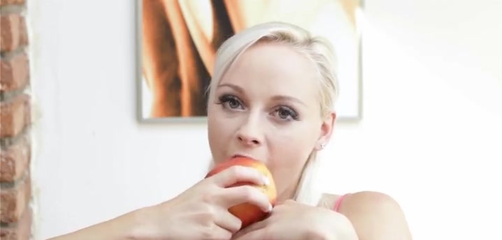 Who knew that a pretty girl eating an apple can be extremely sexy. After this babe took a few bites out of the apple she decided to get naked and start pleasing herself by rubbing her wet pussy.